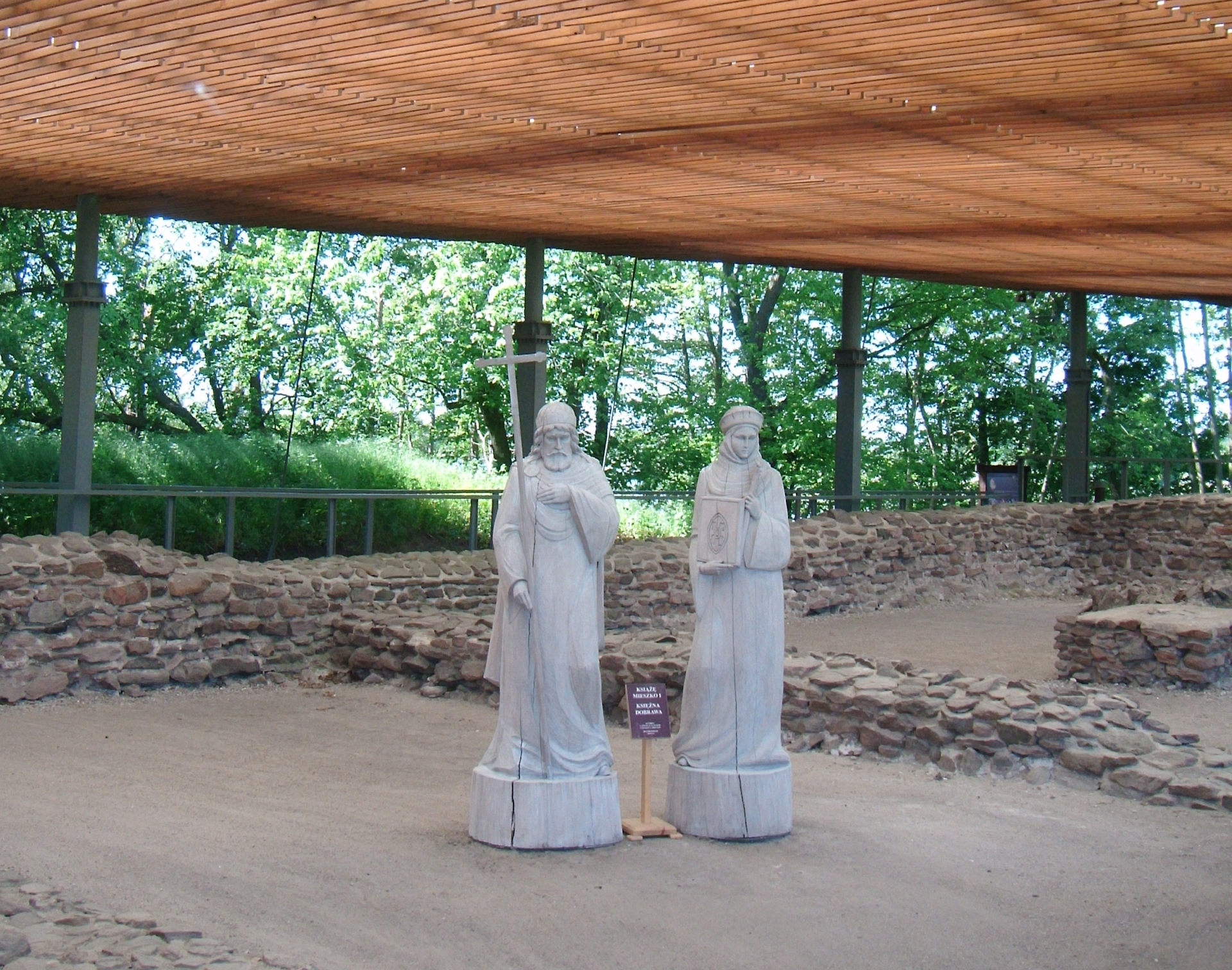 W drugim dniu docieramy promem na Ostrów Lednicki. Jest to w całości teren wykopalisk w tym pierwszy obiekt sakralno-pałacowy wybudowany przez Mieszka I-go. W przypałacowej kaplicy znajdują się dwa baseny służące do udzielaniu chrztów, grobowce uprzywilejowanych zmarłych. Na tym terenie są też inne kościółki i ślady dwóch mostów z tejże epoki. W muzeum można obejrzeć bardzo dużo wykopanych zbroi, sprzętów użytkowych i ozdób - również złotych. Są łodzie a nawet szkielety (bardzo dużej kobiety).