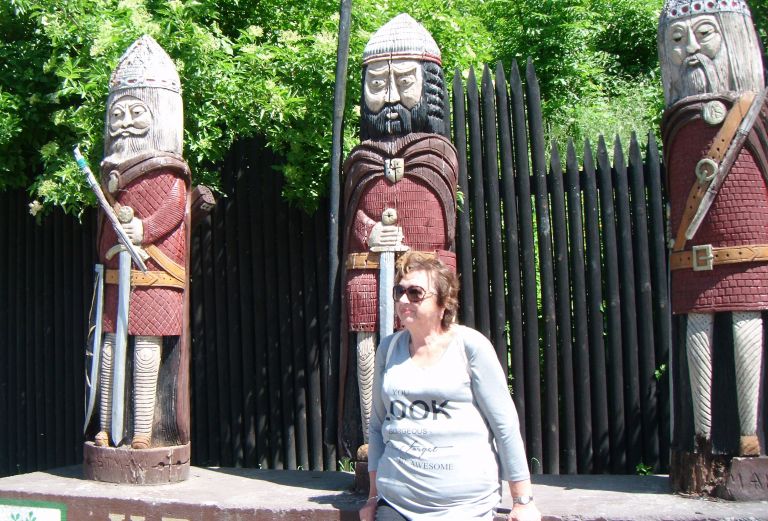 Jeszcze Biskupin! Tutaj niespodzianka dla tych co tutaj kiedyś byli. Cały teren podzielono na okresy od epoki kamiennej, przez epokę brązu do epoki żelaza. Wszędzie odtworzone obiekty mieszkalne, poletka uprawne, sprzęty gospodarskie, warsztaty tkackie, garncarskie i wszędzie są osoby w odpowiednim odzieniu demonstrujące wykonywane tam prace. Oczywiście osada Biskupińska oraz wały obronne są wyłożone drewnem przez co ulice robią wrażenie, wyposażenie chat także.