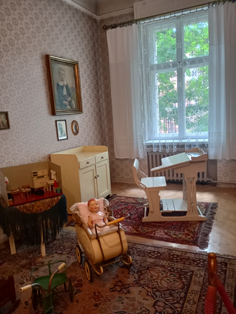 Świadomość, że mieszkania zrekonstruowane są w oryginalnym wnętrzu kamienicy czynszowej z 1910 r. dodają wystawie specyficznego uroku. Przemieszczając się po mieszkaniach od salonu, poprzez buduar i gabinet pana domu, jadalnię, pokój dziecięcy i sypialnię, aż do kuchni ma się wrażenie, że gospodarze za chwilę pojawią się przed nami. Wiszące w przedpokoju płaszcze z epoki, albumy ze starymi zdjęciami porozkładane na biurkach, nakryte stoły w jadali potęgują wrażenie przeniesienia się w czasie do zupełnie innej epoki. Ogromne wrażenie zrobiła na nas architektoniczna żardiniera w salonie. Mebel, którego nigdzie indziej zobaczyć już nie można, służył do prezentowania kwiatów doniczkowych we wnętrzu. Stojący na tle wykusza tworzy iluzję pałacowego ogrodu. Niezwykle drogi mebel, jak na tamte czasy, był wykonywany na zamówienie i jest charakterystyczny dla niemieckiego wystroju wnętrz.