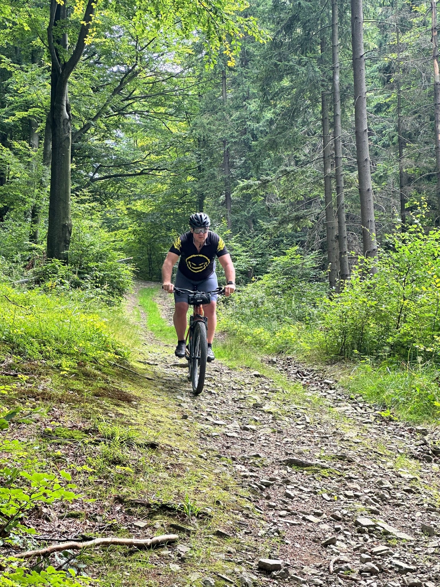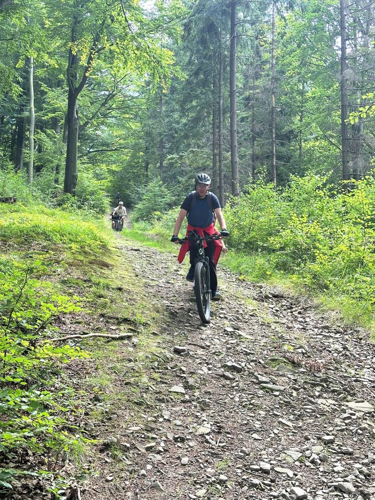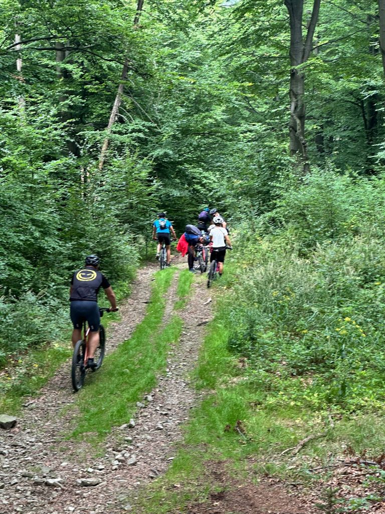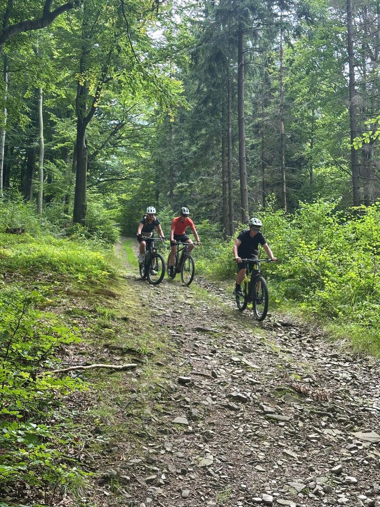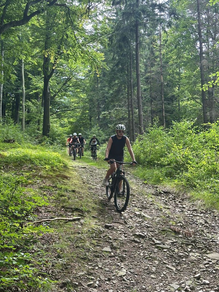 Cała grupa przejechała wspólnie 31 km pięknymi beskidzkimi szlakami, pokonując asfalt i żwir w proporcji 70:30. Było trochę podjazdów, sporo widoków i dużo radości z jazdy w świetnym towarzystwie.