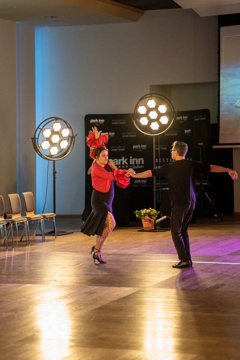 Walc angielski, walc wiedeński, tango, fokstrot, quickstep, flamenco, zouk, salsa kubańska, kizomba, cha-cha, samba, rumba, paso doble, jive – to tańce zaprezentowane podczas I Festiwalu Tańca Śląskiej Izby Lekarskiej, który odbył się 22 kwietnia 2023 r. w Katowicach.