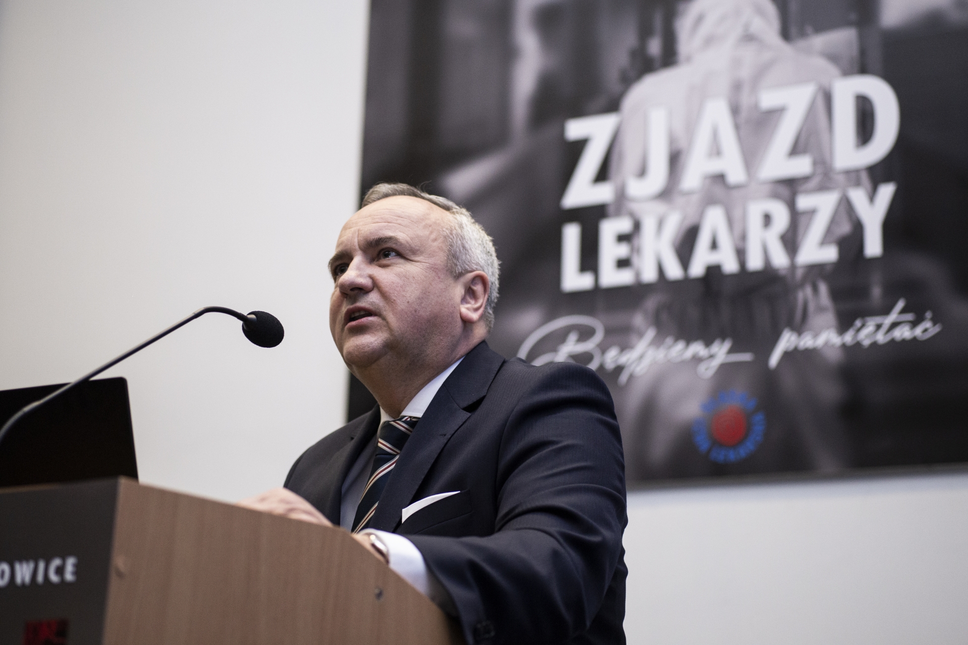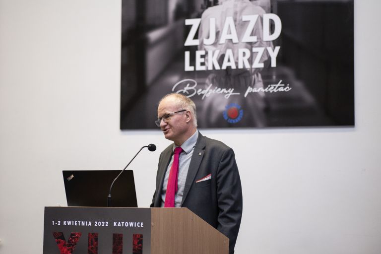 Lekarze dla Lekarzy – z Wami dla Was! - tymi słowami – misją Śląskiej Izby Lekarskiej – Prezes dr n. med. Tadeusz Urban otworzył część uroczystą XLII Sprawozdawczo-Wyborczego Zjazdu Lekarzy. Prezes Tadeusz Urban podsumował 4 lata swojej kadencji oraz najważniejsze wydarzenia tego czasu, zaznaczając, że ten Zjazd jest wyjątkowy, ponieważ samorząd lekarski ma za sobą bardzo trudną kadencję, naznaczoną przez pandemię. „Pandemia dotknęła wiele osób, ale w sposób szczególny odcisnęła piętno na naszej grupie zawodowej. Lekarze stojąc na pierwszej linii frontu, stali się ofiarami tej walki. Plakat, który jest symbolem tego Zjazdu, ma uczcić pamięć naszych Koleżanek i Kolegów, którzy poświęcali się walce i którzy ponieśli najwyższą cenę" – mówił.