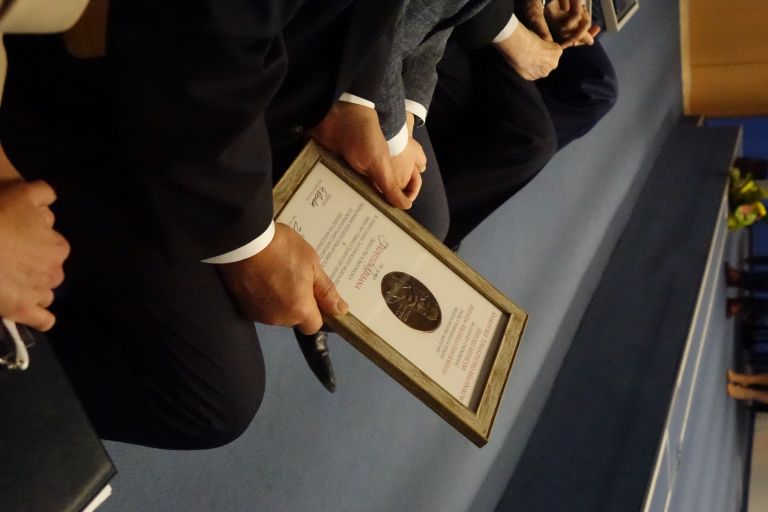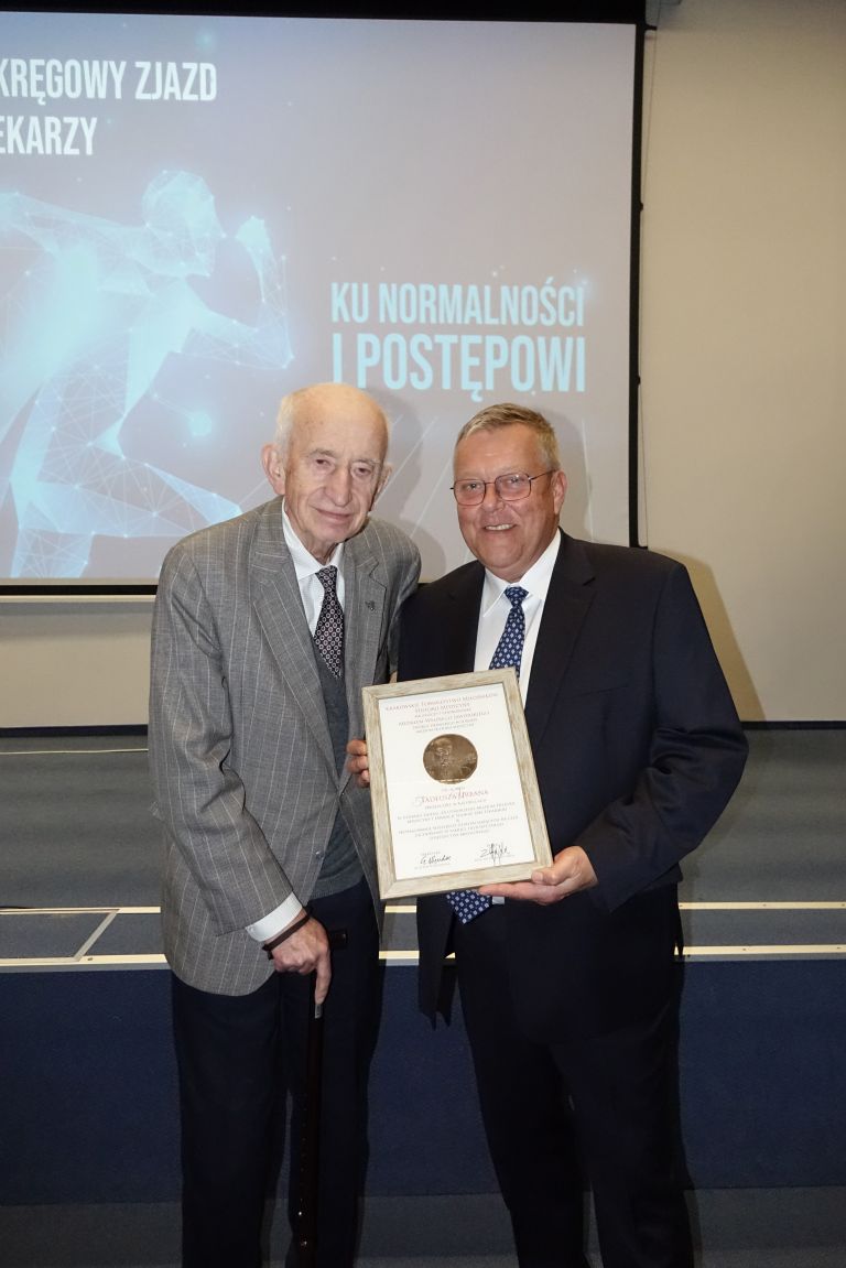 Na zakończenie części oficjalnej zjazdu na scenę został poproszony prof. dr hab. n. med. Zdzisław Gajda - Prezes Krakowskiego Towarzystwa Miłośników Historii Medycyny, który wręczył Prezesowi dr. n. med. Tadeuszowi Urbanowi medal Walerego Jaworskiego w uznaniu zasług za utworzenie Muzeum Historii Medycyny i Farmacji Śląskiej Izby Lekarskiej.
