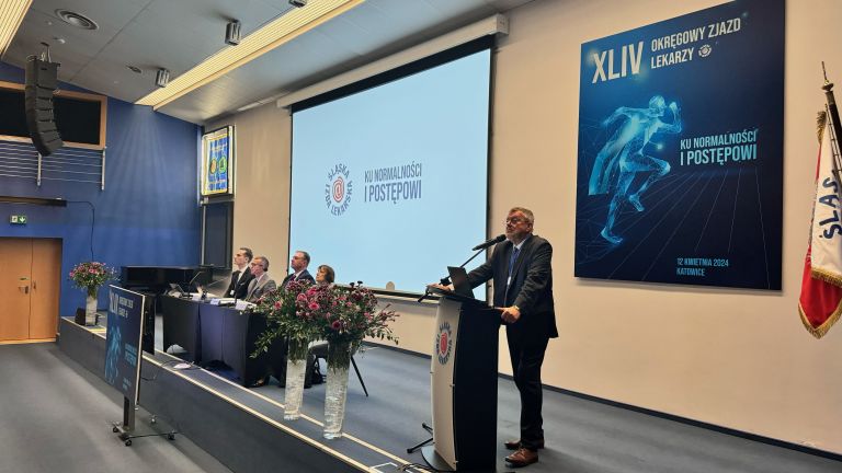 Ku normalności i postępowi - pod takim hasłem 12 kwietnia 2024 r. w Domu Lekarza odbył się XLIV Okręgowy Zjazd Lekarzy w Katowicach.